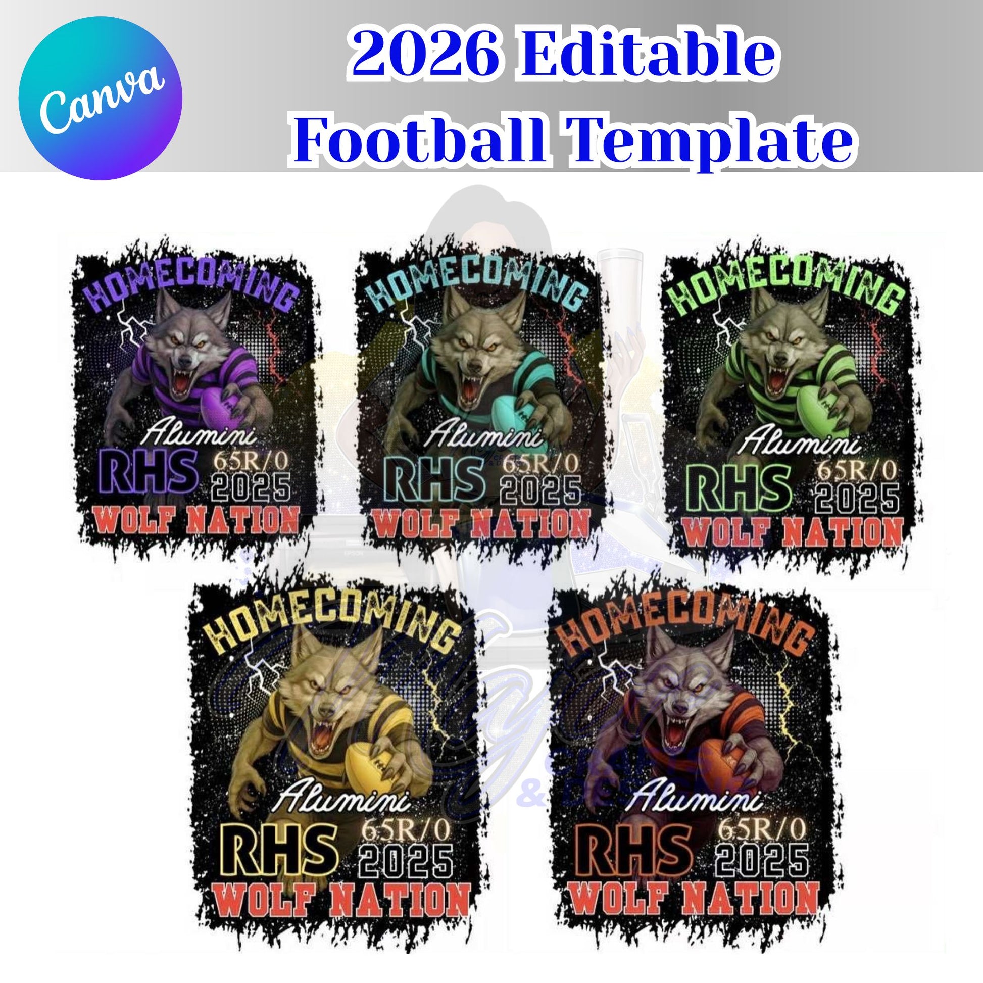 Transform your football program's branding with these five professionally designed center print templates. Each template is fully editable, allowing you to seamlessly upload your team logo, customize text, and adjust colors to match your school's identity. Perfect for creating cohesive merchandise, promotional materials, and fan gear. Save time on design work while maintaining a polished, branded look across all your football-related products. Ideal for high school athletic departments and booster clubs looking to elevate their visual presence.